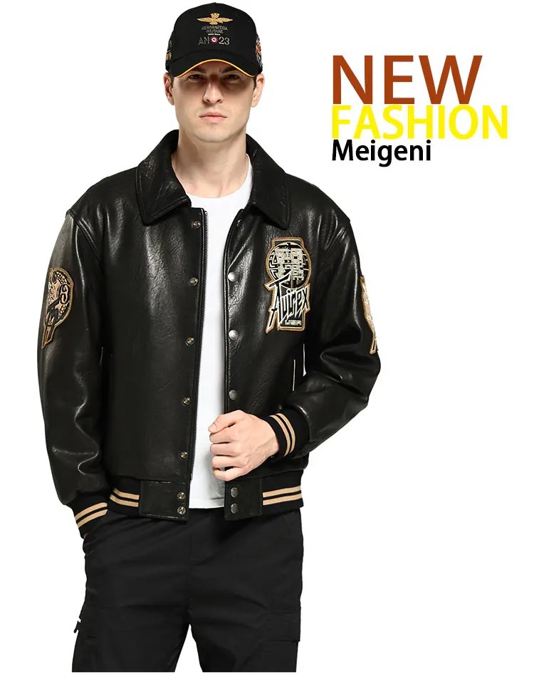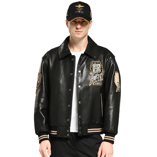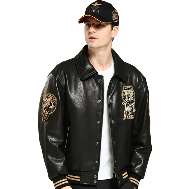 Calfskin Bomber Leather Jacket Winter Coats for Men